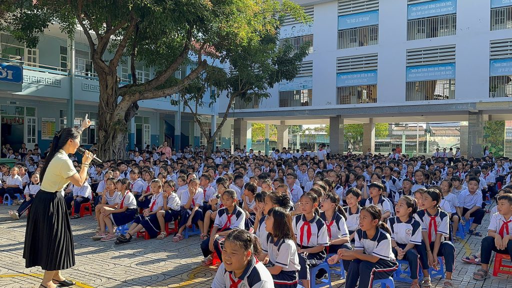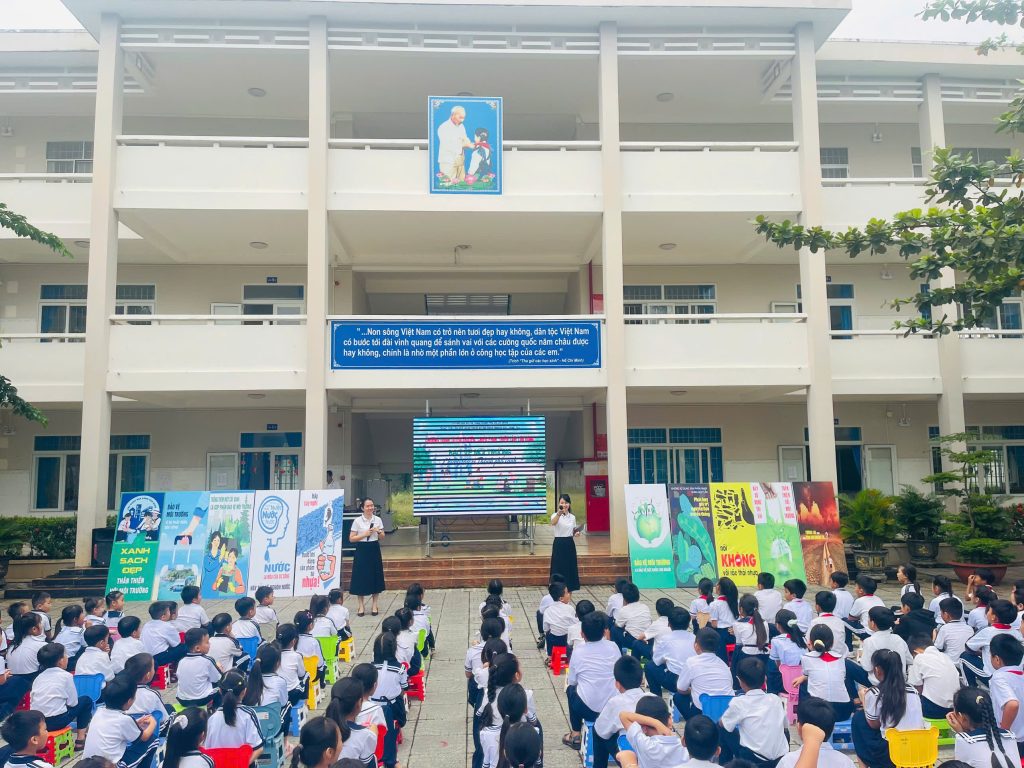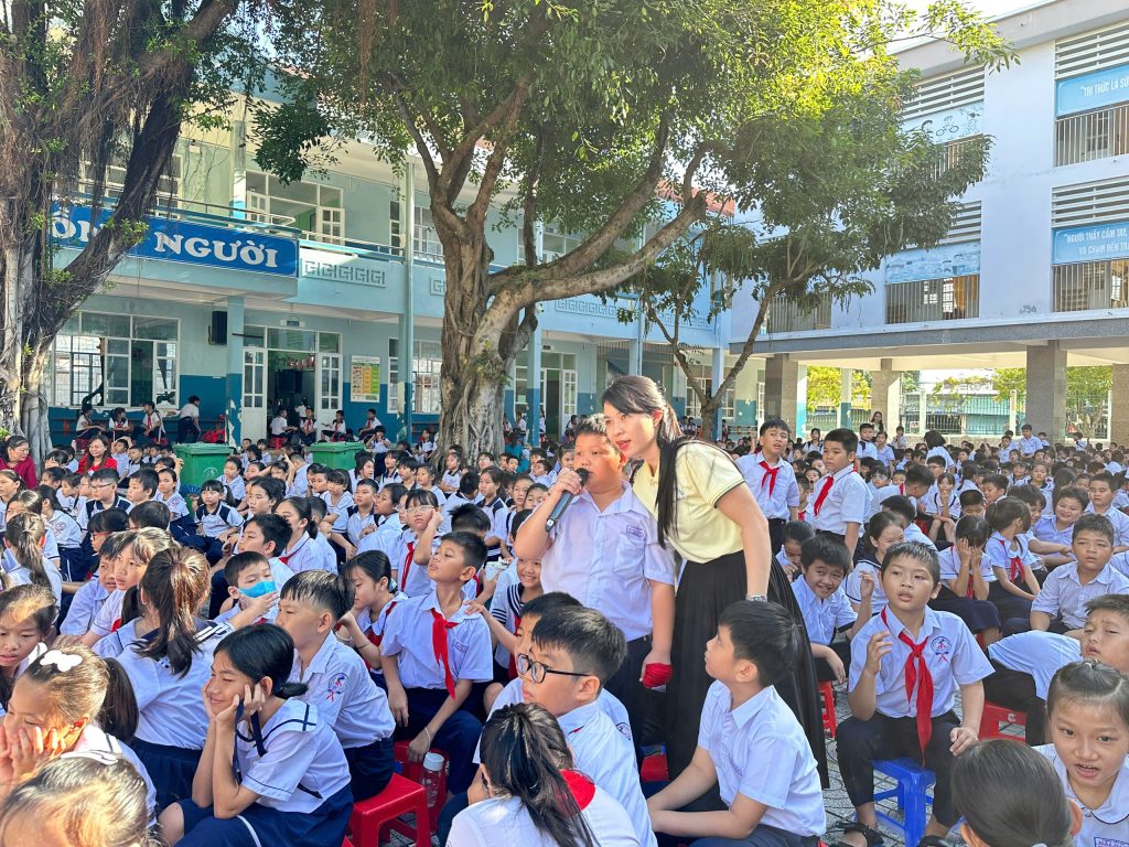 Đi qua 30 điểm phục vụ cũng là đi qua 30 không gian khác nhau của giáo dục: có sân trường rộng rãi với hàng ngàn học sinh, có trường nằm lọt giữa những con đường nhỏ ven biển, có điểm trường chỉ vài trăm học sinh giữa cánh đồng. Nhưng dù ở đâu, tinh thần tiếp nhận đều giống nhau: học sinh hào hứng, thầy cô đồng hành, và thông điệp môi trường được đón nhận với sự nghiêm túc hiếm thấy. Hình ảnh các em chăm chú nghe các cô tuyên truyền miệng, xem từng thước phim về rừng bị tàn phá, về đại dương đầy rác hay về những tổn thương thiên nhiên đang gánh chịu; sự sôi nổi khi các em tham gia trò chơi phân loại rác; ánh mắt tự tin khi các em phát biểu về việc giữ gìn môi trường trường lớp, tất cả tạo nên sức lan toả mạnh mẽ mà đôi khi các bài viết hay những con số thống kê không thể mô tả hết.